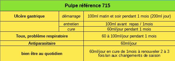 60 à 100 ml par jour sur 1 mois minimum. L'effet anti-inflammatoire et cicatrisant sur l'épithélium va améliorer l'état général de tout l'appareil respiratoire.